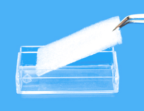 ◆週末の肌の集中ケア用に開発されたスポンジ状の凍結真空乾燥美容液。肌が求める成分である高分子量のヒアルロン酸 Na、低分子量のヒアルロン酸Na、リン酸アスコルビルMg、コラーゲン、アルギニン、ポリ-γ-グルタミン酸Naの水溶液をマイナス85℃で瞬間凍結。真空乾燥の後、アルミ袋に封印しました。ご使用前に、専用の溶解液や精製水で溶かして美容液を調製してください。